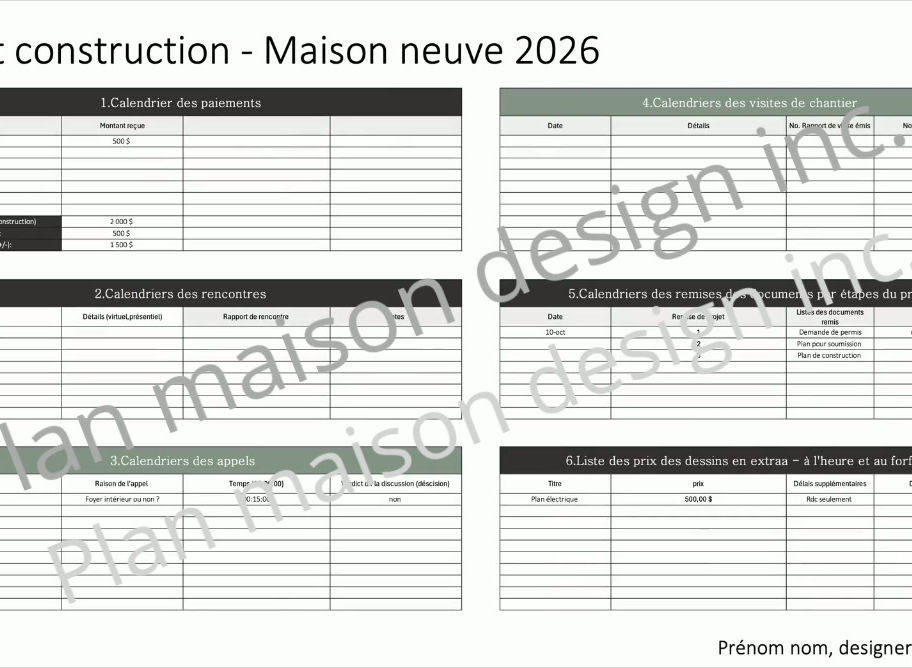 - Inclus : Page Présentation VIP, Budget & Échéancier complet, Gestion des paies et la Liste Prix Extras 2026 Exclusive. 💎